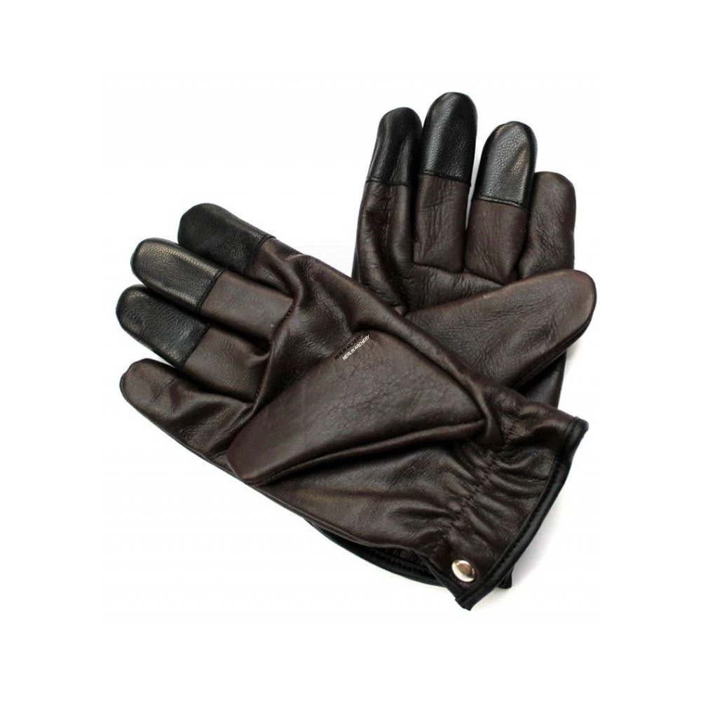 They are made from Genuine Aniline Leather. This supple leather provides a comfortable, well-protected fit around the hand and has reinforced fingertips on both hands.